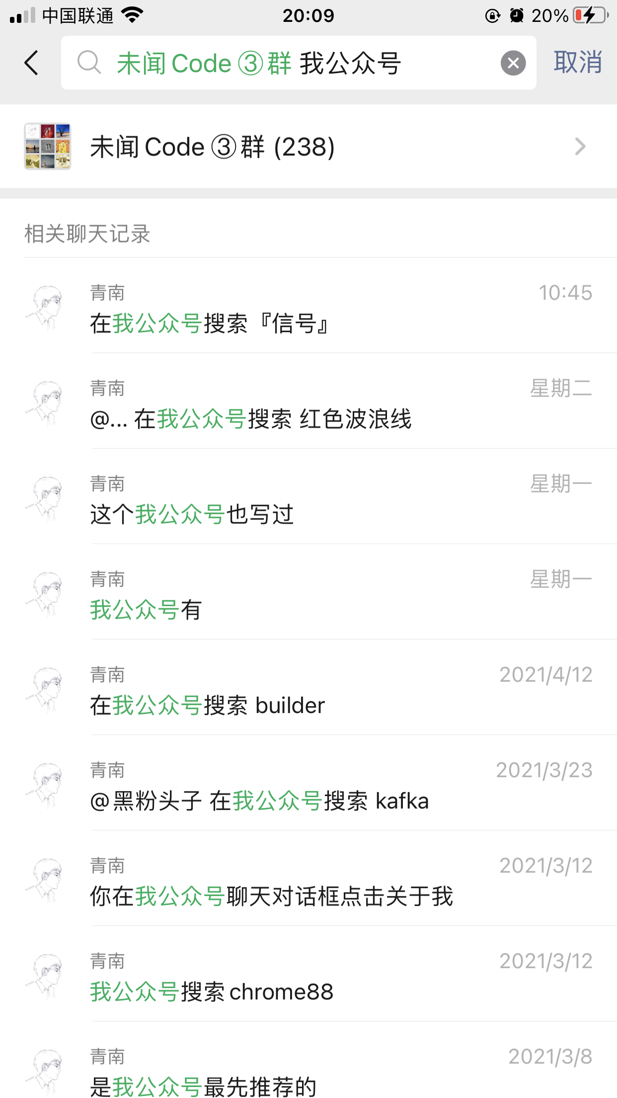 而碰巧最近读者交流3群的讨论氛围非常热烈,很多同学在里面交流各种问题。我发现,其中60%的问题都是我公众号里面讲到过的。所以,大家看我的聊天记录会发现如下图所示的情况: